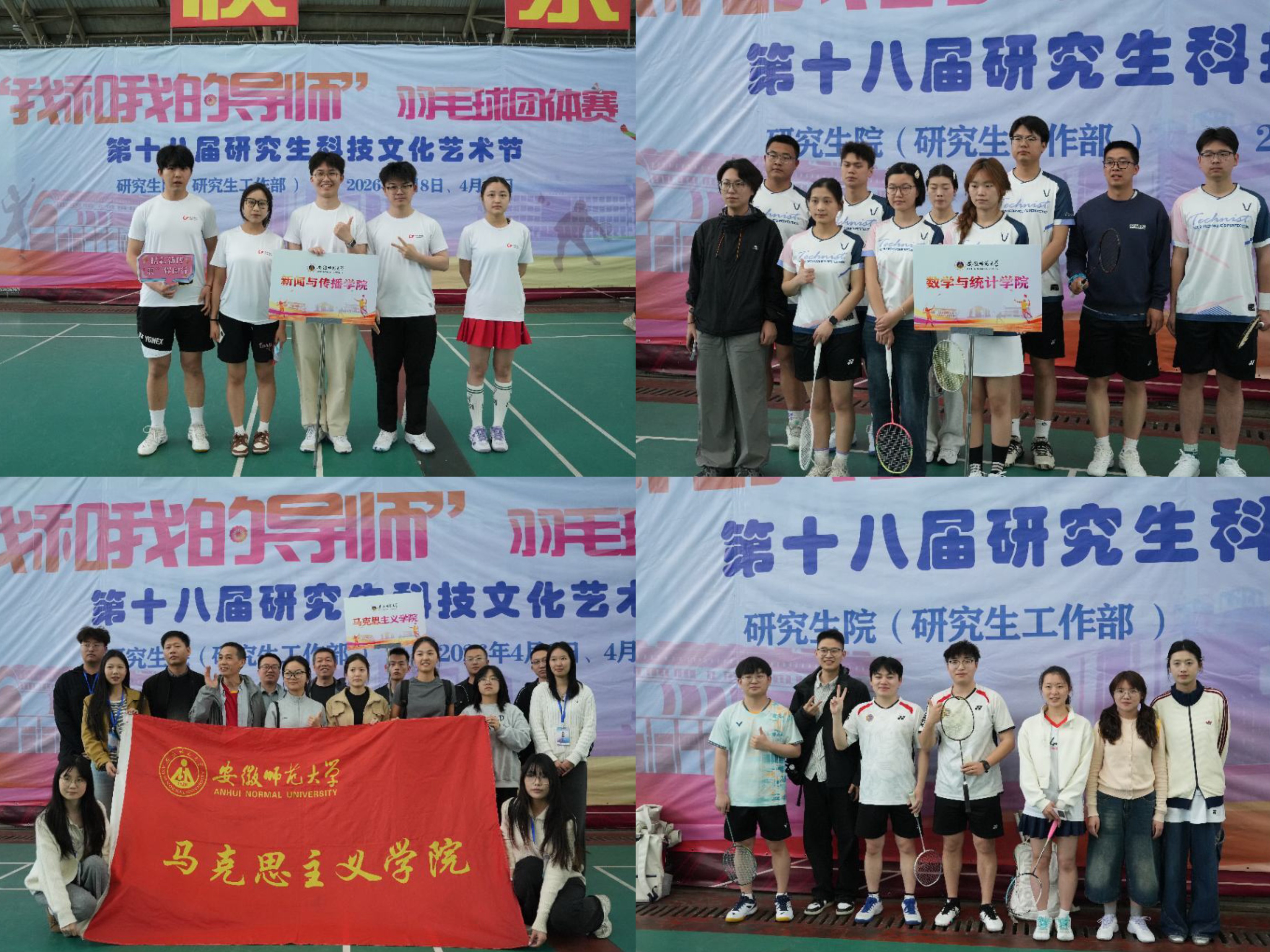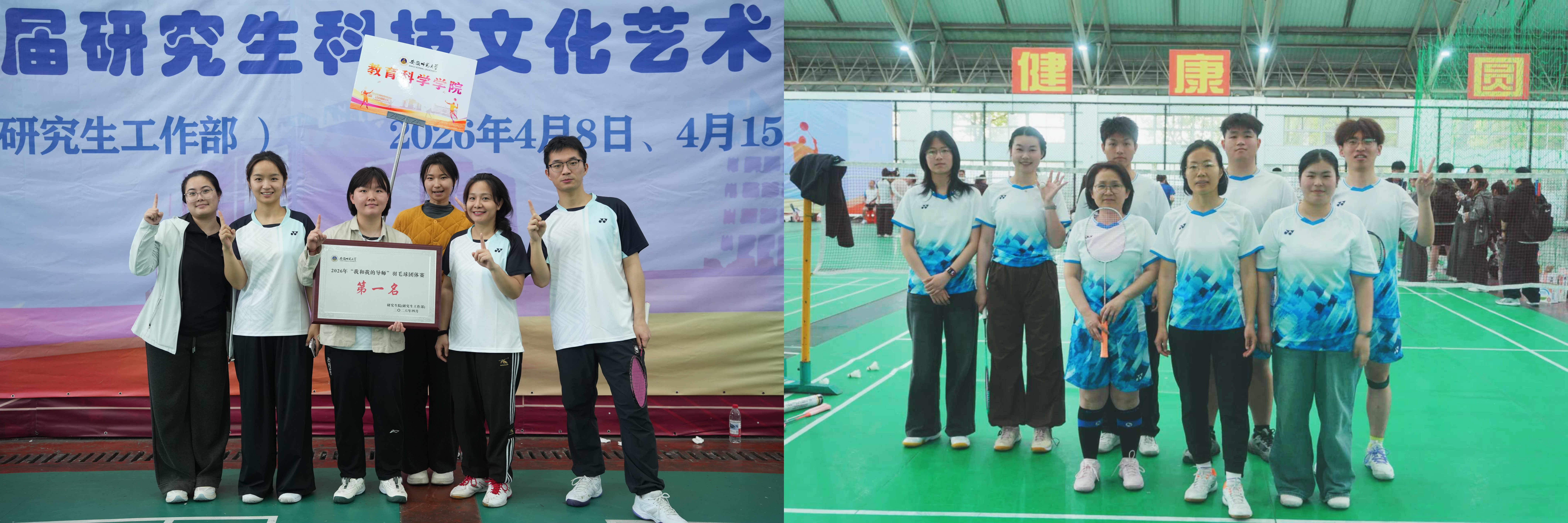 比赛分为两个阶段,第一阶段采用小组循环赛制,第二阶段采取淘汰赛制。各支队伍全力以赴,奋勇拼搏,男单赛场步伐灵活、攻防转换迅速,选手精准吊球、大力扣杀,比分交替上升;女单赛场沉稳细腻,网前小球与后场高远球巧妙结合,彰显技巧与耐力;男双、女双、混双赛场配合默契,跑位衔接流畅,拦网、扑杀一气呵成,场边观众热情高涨,掌声与欢呼声此起彼伏。最终,教育科学学院夺得第一名,体育学院、音乐学院、物理与电子信息学院、地理与旅游学院、化学与材料科学学院、计算机与信息学院、经济管理学院获得第二名至第八名,历史学院、生态与环境学院、数学与统计学院、生命科学学院获得道德风尚奖;马克思主义学院、文学院、新闻与传播学院、外国语学院、美术学院、法学院获得优秀组织奖。此外,杨新虎、王泽华获“最佳男双搭档运动员”,李蔚、王恩勤获“最佳女双搭档运动员”,金剑、付梅获“最佳混双搭档运动员”。