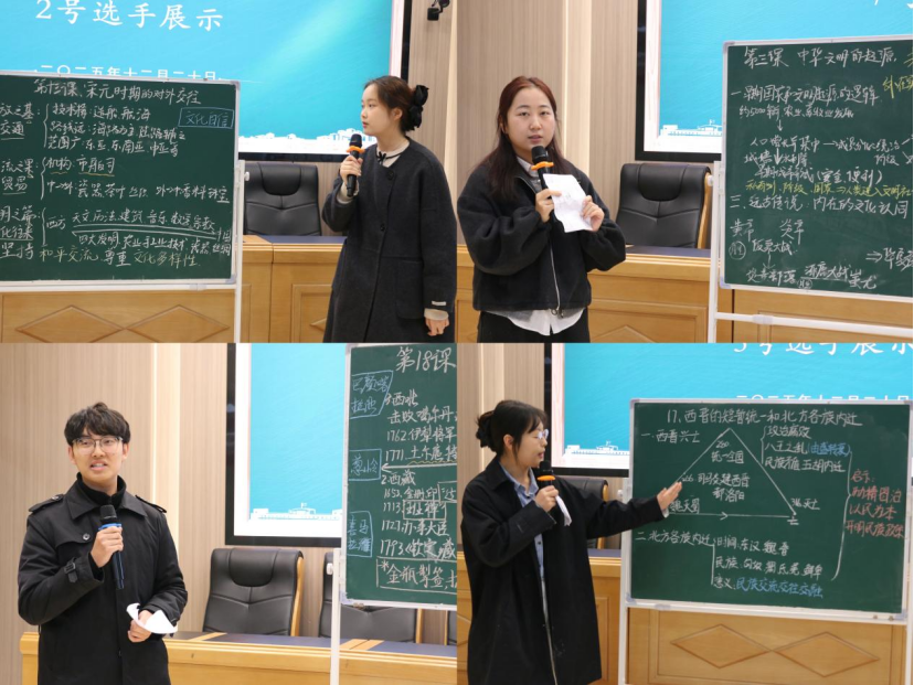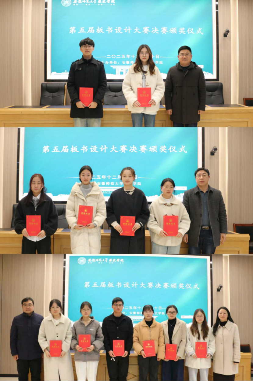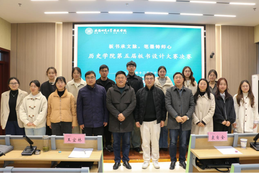 本网讯(历史学院 文/陈睿 图/陈蒙)为切实提升研究生教育实践能力,12月20日上午,历史学院在文典楼B108报告厅举办第五届研究生板书设计大赛决赛,特邀芜湖市第十一中学城东校区副校长袁自全、第十一中学王宜林、南陵中学储蓉蓉、安徽师范大学附属中学李三军等中学历史教学名师担任评委。