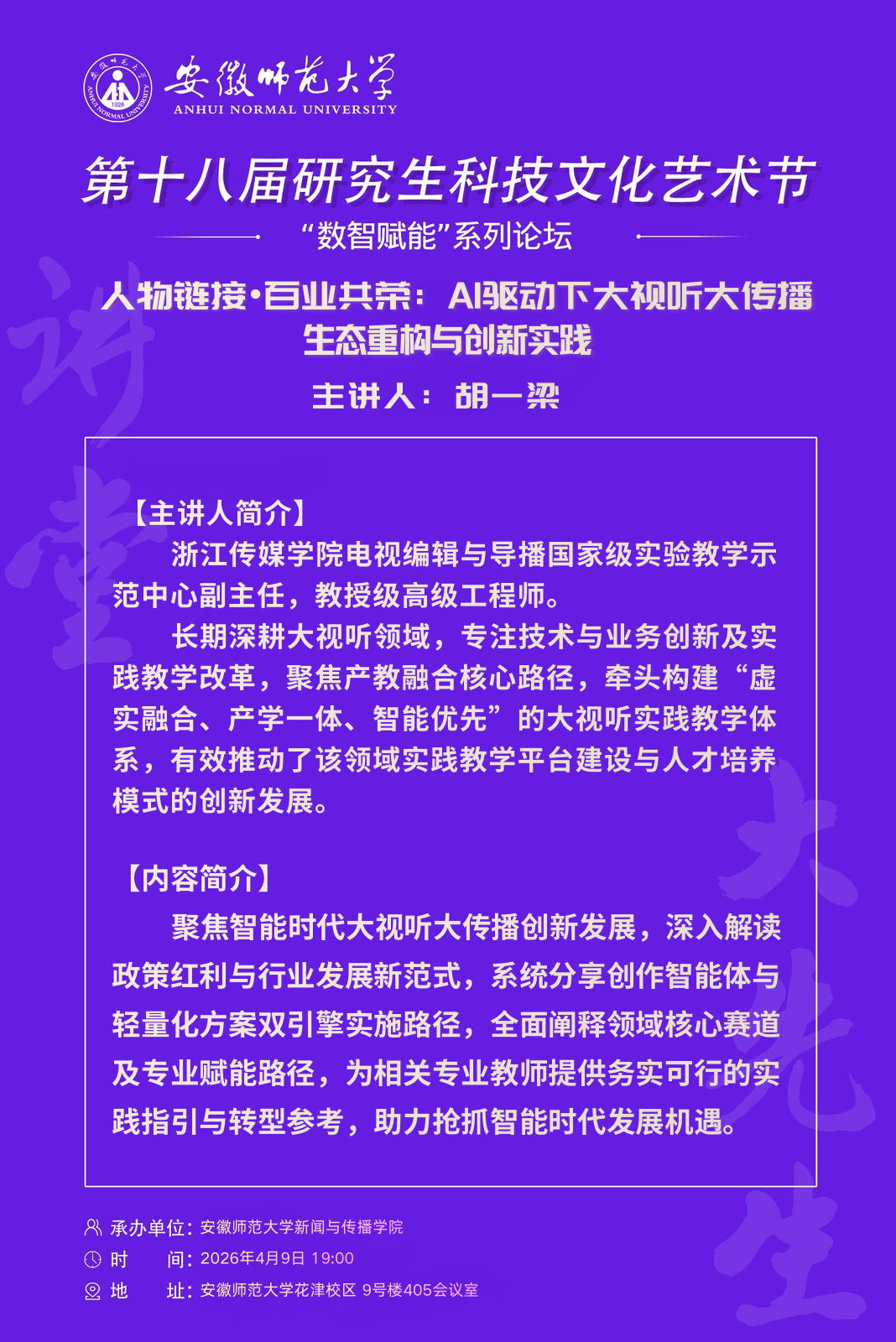 上一条:【第十八届研究生科技文化艺术节】学术活动月“大先生”讲堂二